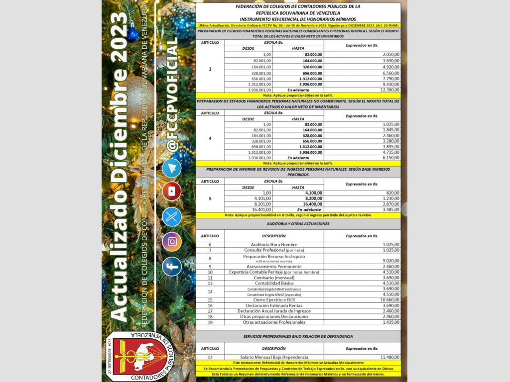 Honorarios Mínimos. Actualizado DICIEMBRE 2023